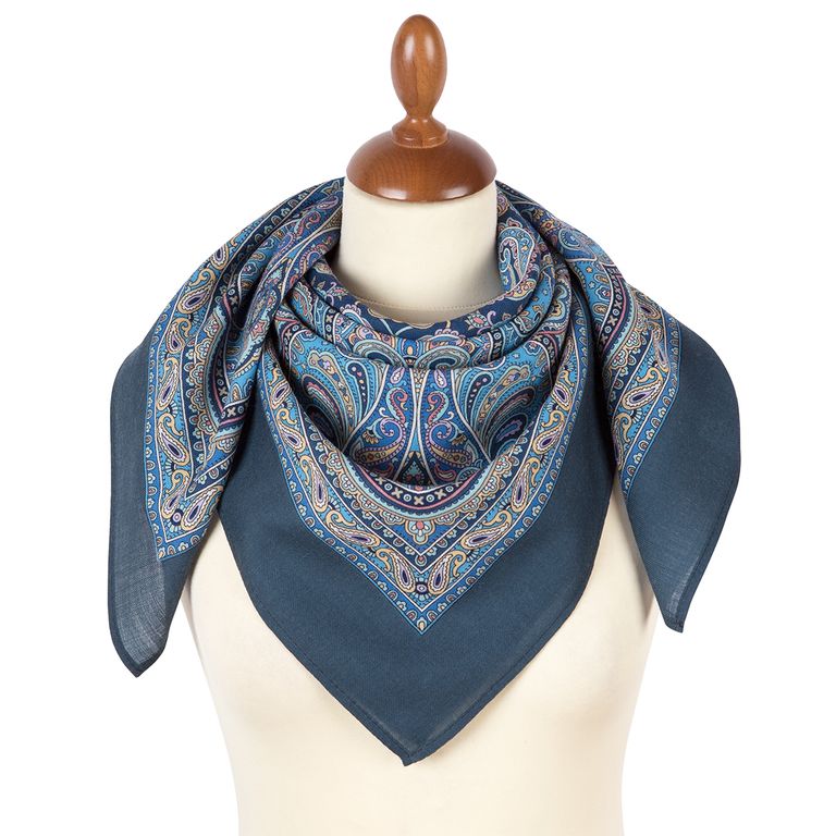 Павловопосадский шерстяной платок "Жемчужные росы" 1907-1, без бахромы