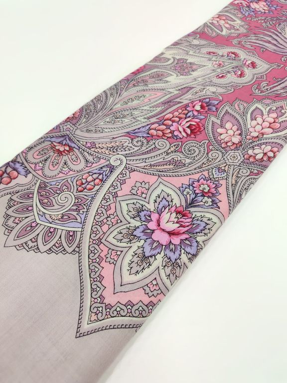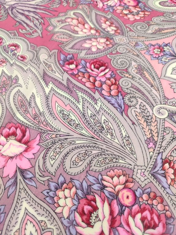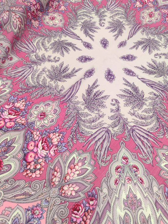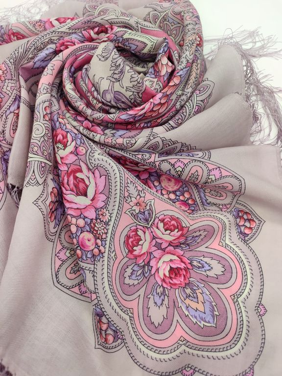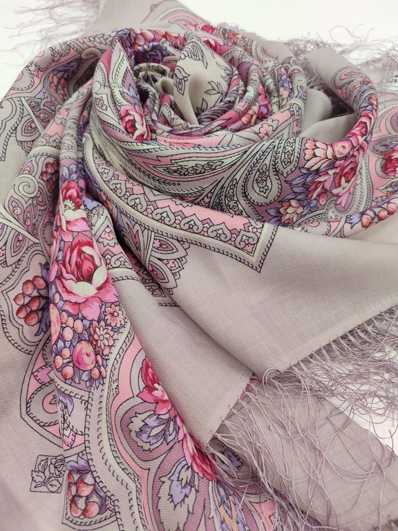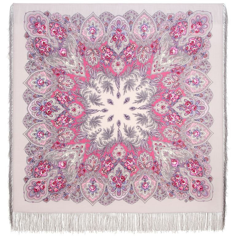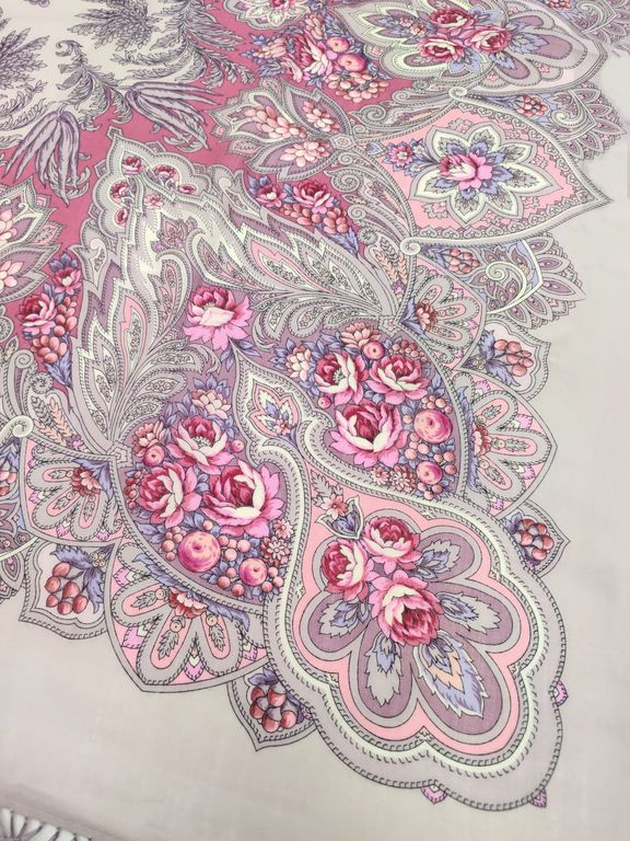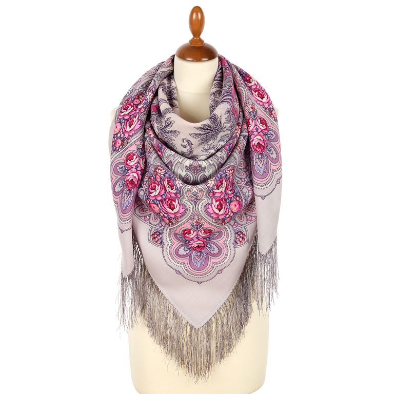 Павловопосадский шерстяной платок Зимняя роза 2016-1, с шёлковой бахромой