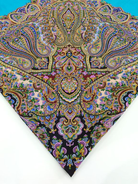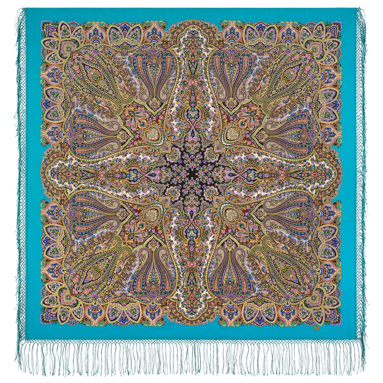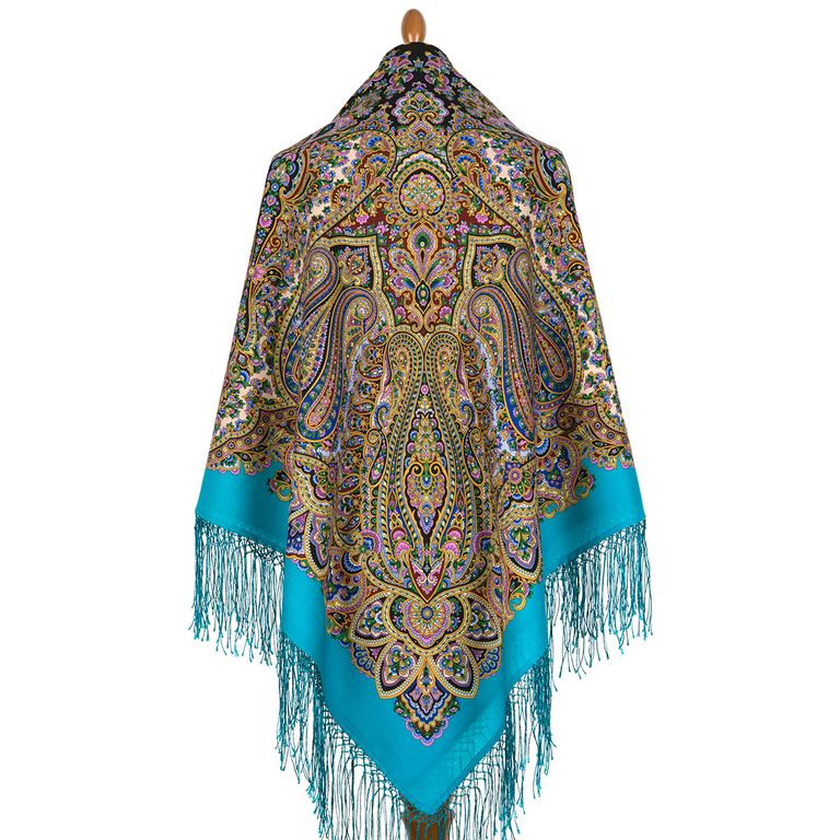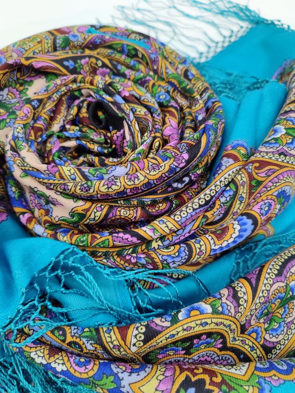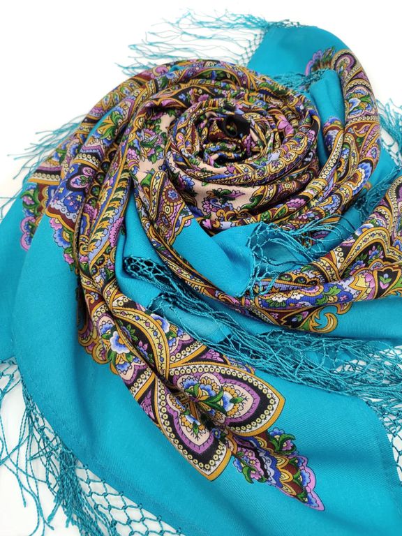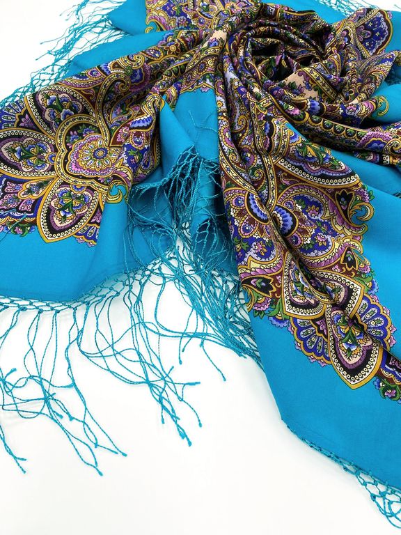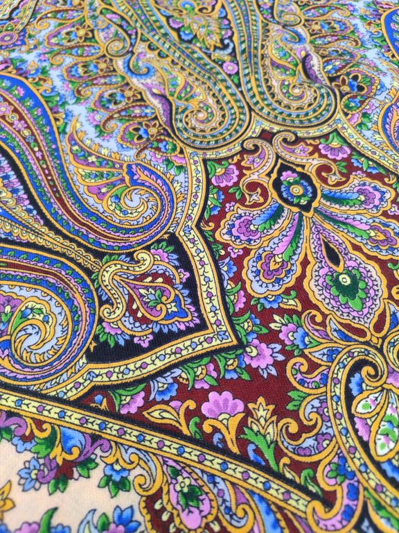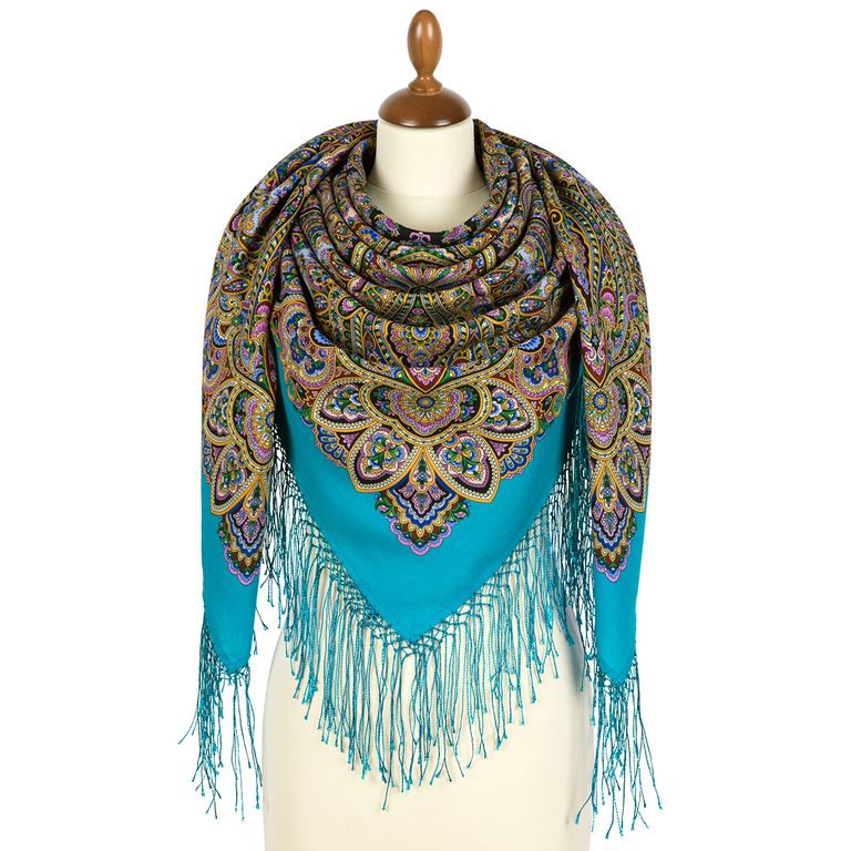 Павловопосадский шерстяной платок "Знойный ветер" 1888-11, с вязаной вручную бахромой
