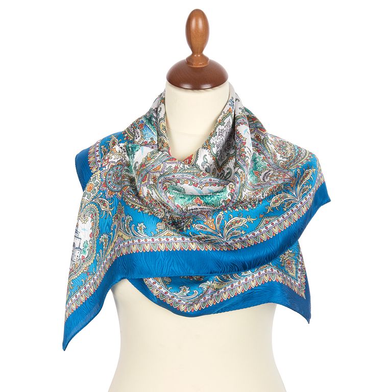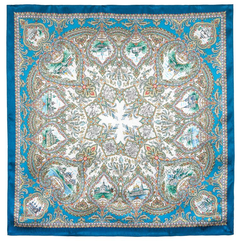 Павловопосадский шёлковый платок без бахромы Золотое кольцо 801-13