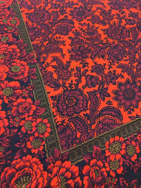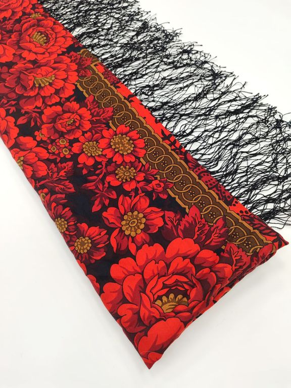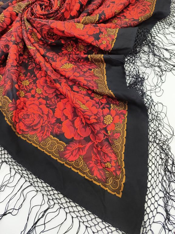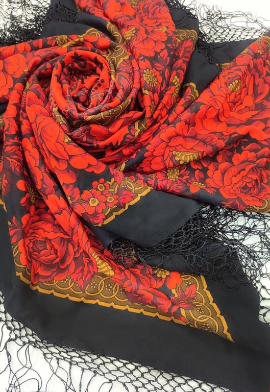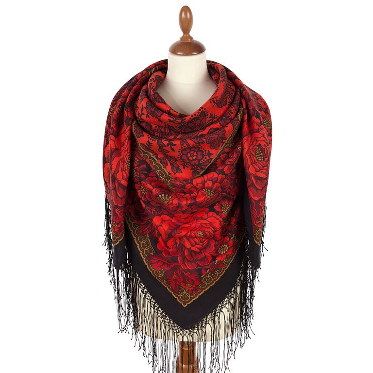 Зрелый возраст — это не старость ни в коем случае! Это возраст расцвета души, ее страстного желания жить и творить, новых открытий в себе и окружающем мире, это возраст любви — зрелой, неспешной, бесконечной. Этому настроению отвечает и изданный нами платок: это идеальная шаль для всех, кто любит страстный, огненный красный!