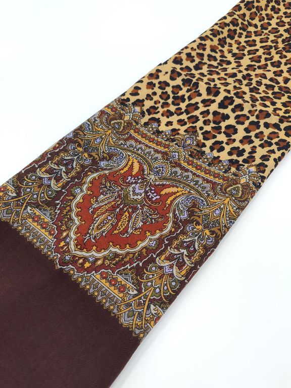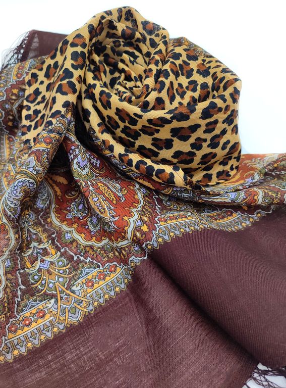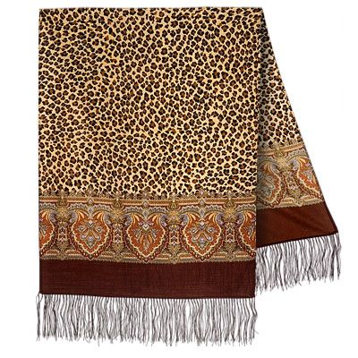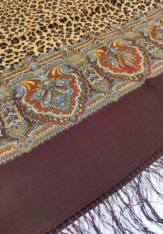 Павловопосадский шерстяной шарф "Леопардовые сны" арт. 1295-17, с шёлковой бахромой