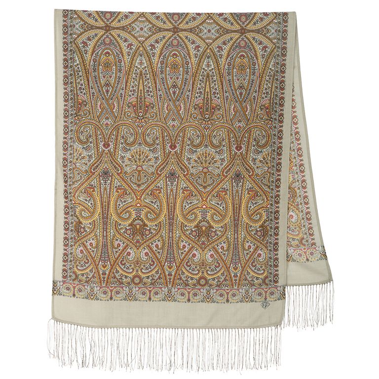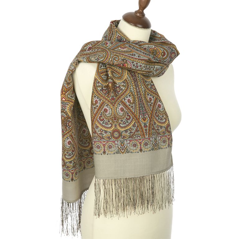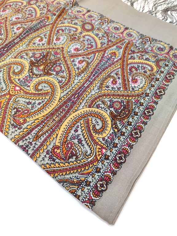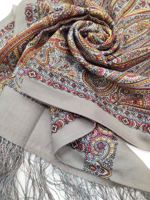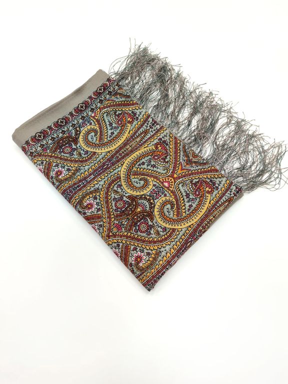 Павловопосадский шерстяной шарф "Романтическое свидание" арт. 1388-51, с шёлковой бахромой