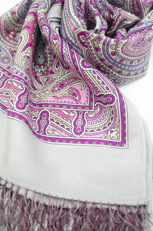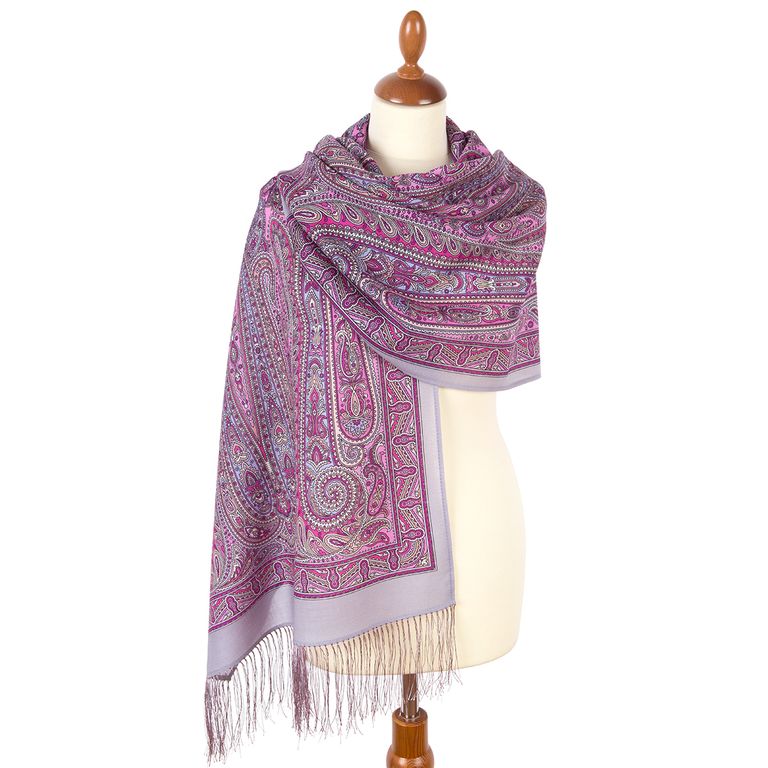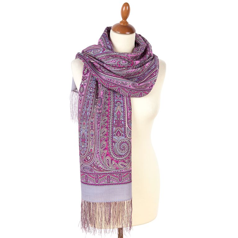 Павловопосадский шерстяной шарф "Зимняя пряность" арт. 2080-51, с шёлковой бахромой