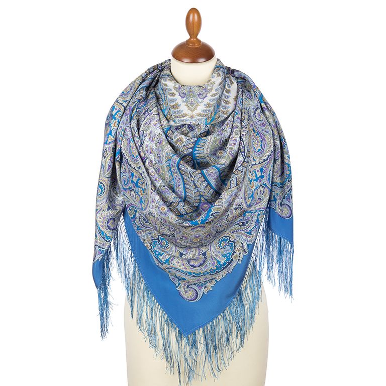 Павловопосадский шёлковый платок "Великолепный век" 1867-13 с шёлковой бахромой
