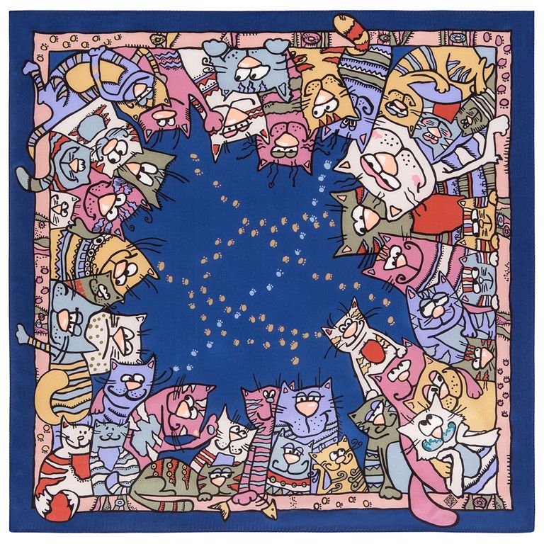 Павловопосадский шёлковый платок "Мартовский" арт. 1085-14 без бахромы