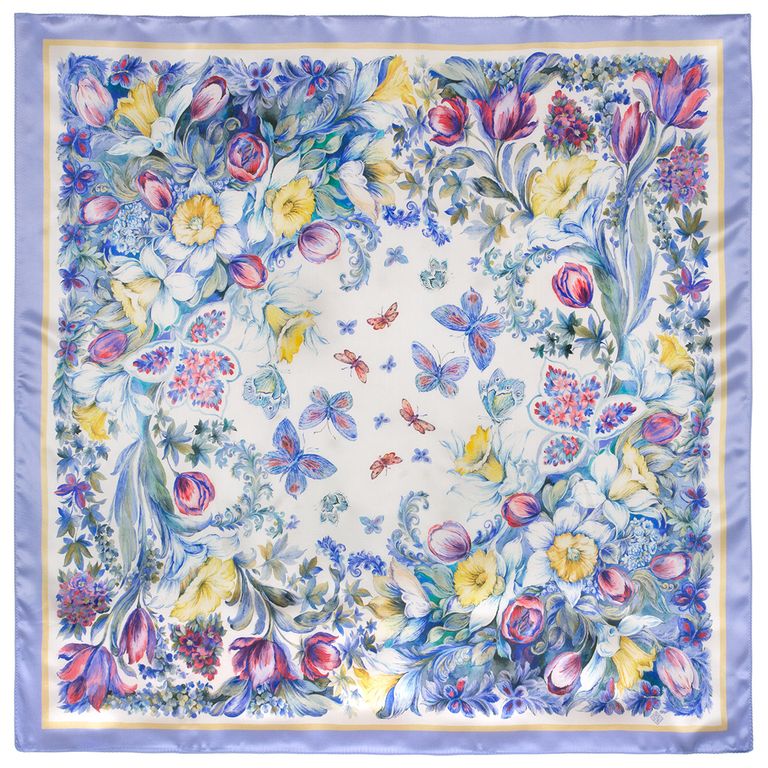 Павловопосадский шёлковый платок "Предчувствие любви" арт. 10019-15 без бахромы