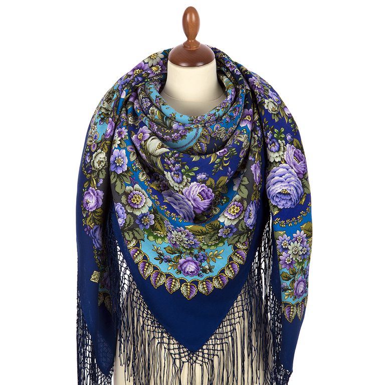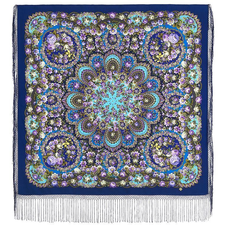 Павловопосадская шерстяная шаль "Душа розы" 1838-14, (многоцветная)