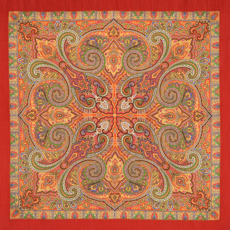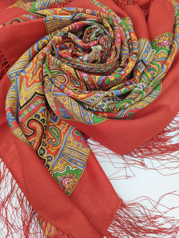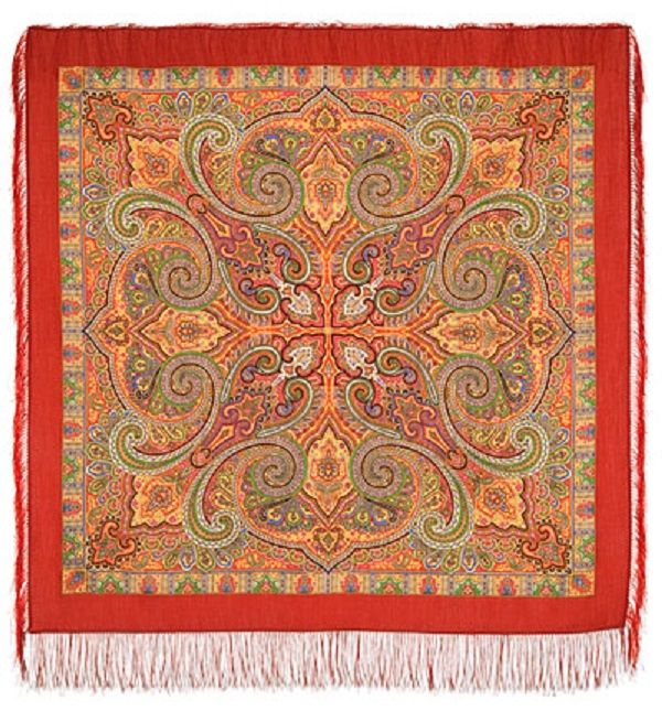 Павловопосадский шерстяной платок "Классический" 814-4, с шелковой бахромой