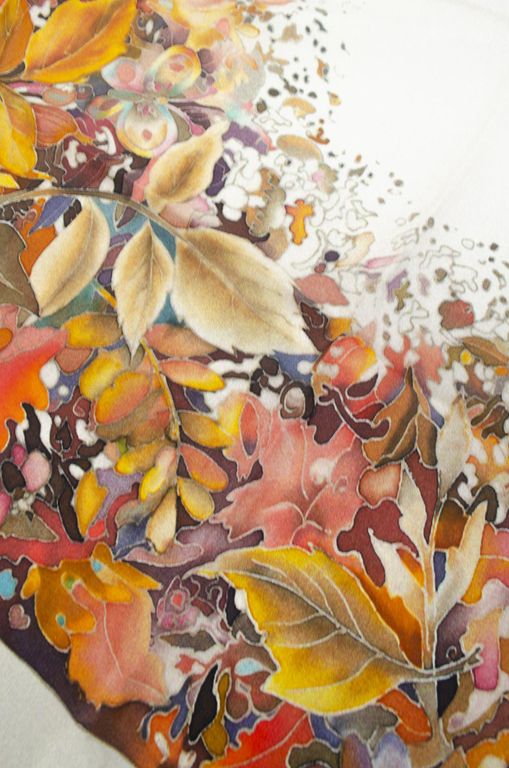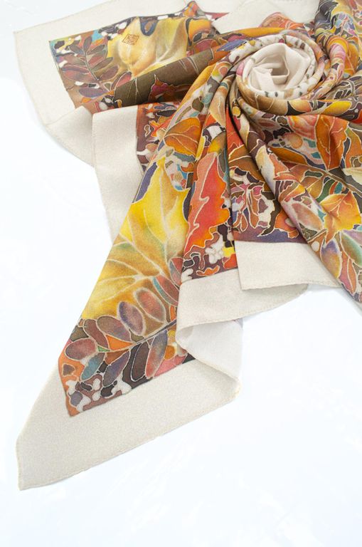 Павловопосадский шёлковый платок "Осенний мотив" арт. 10293-2 без бахромы
