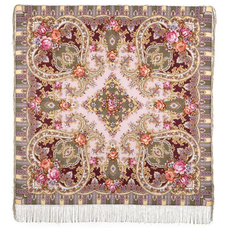 Павловопосадский шерстяной платок "Таинственный образ" 1782-53, с шелковой бахромой