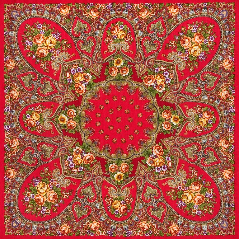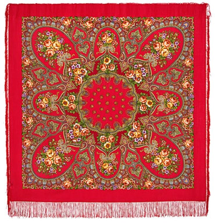 Павловопосадский шерстяной платок "Венский вальс" 1121-3, с шелковой бахромой