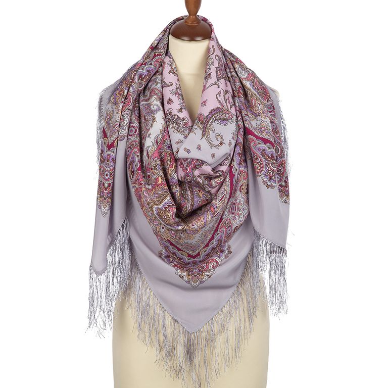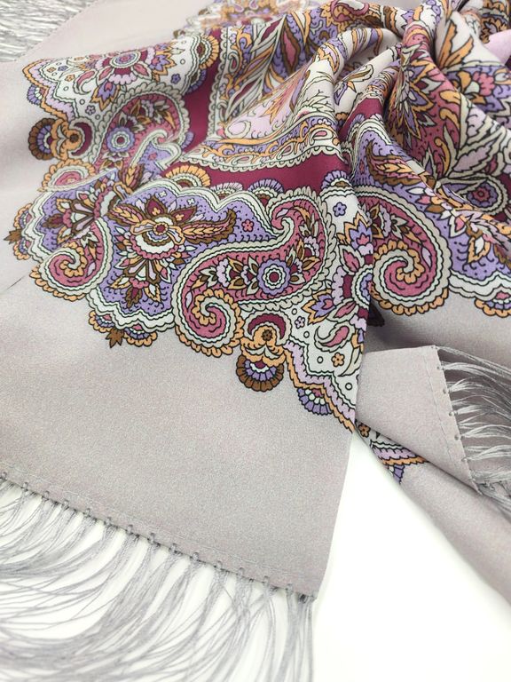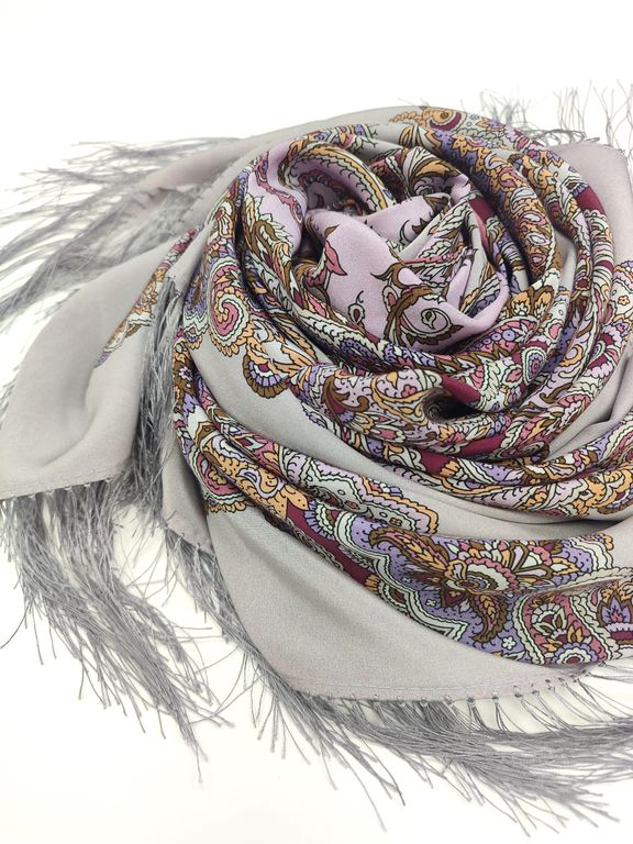 Павловопосадский шёлковый платок "Восточные сладости" арт. 1429-1 с шёлковой бахромой