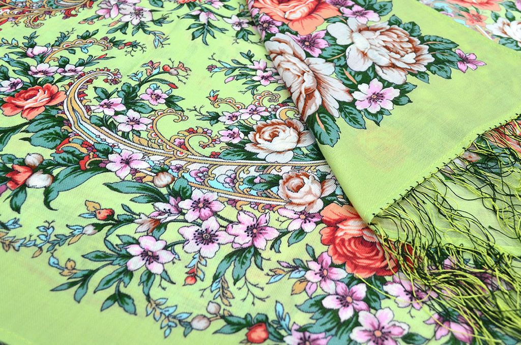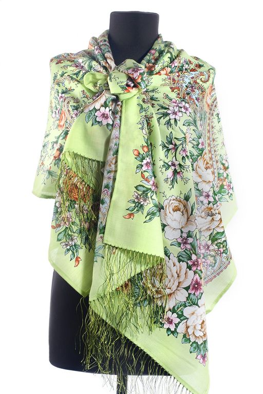 Павловопосадский шерстяной шарф "Цветочный роман" арт. 1747-59, с шёлковой бахромой